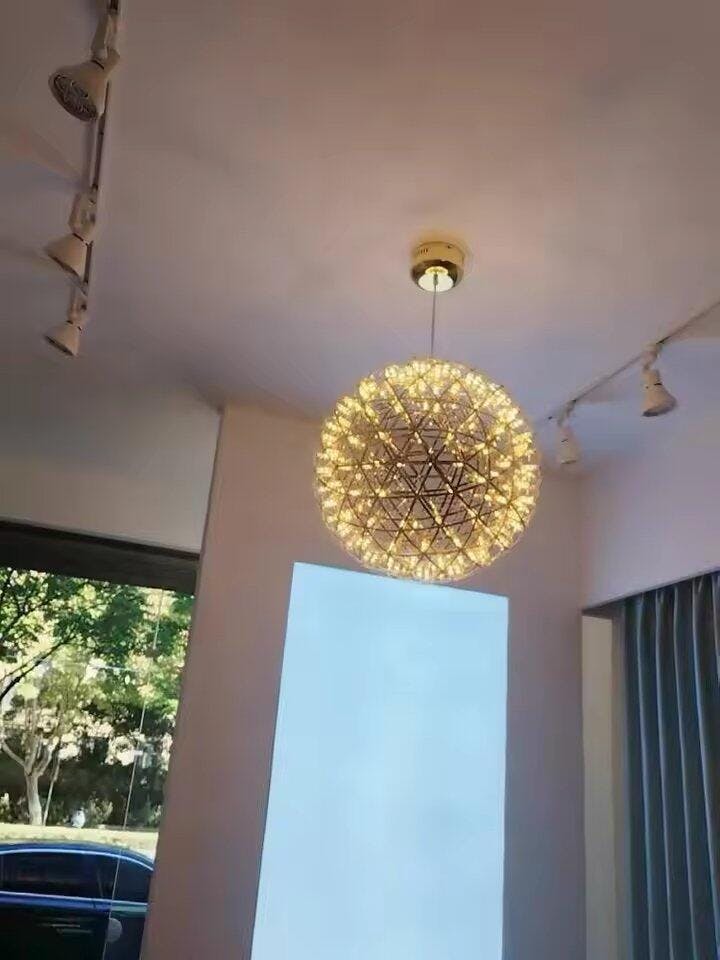 A spherical chandelier with a starry sparkle